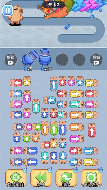 《挪车我贼6》属于休闲益智类游戏,在游戏里,玩家得点击那些带有箭头的水豚车辆,让它们驶离,进而变成炮台,守护水豚成功逃跑。