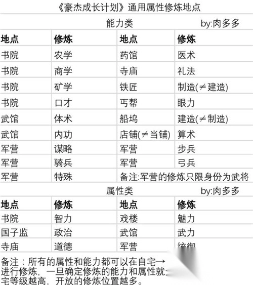 四.各个属性的训练地点