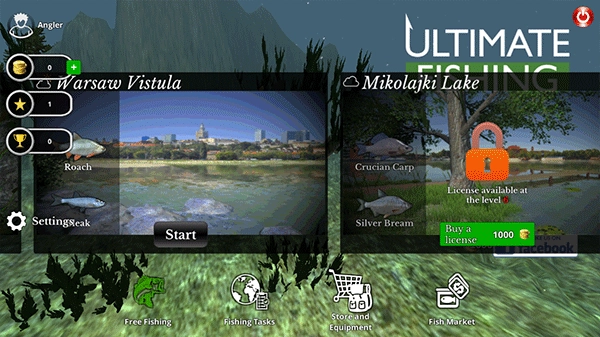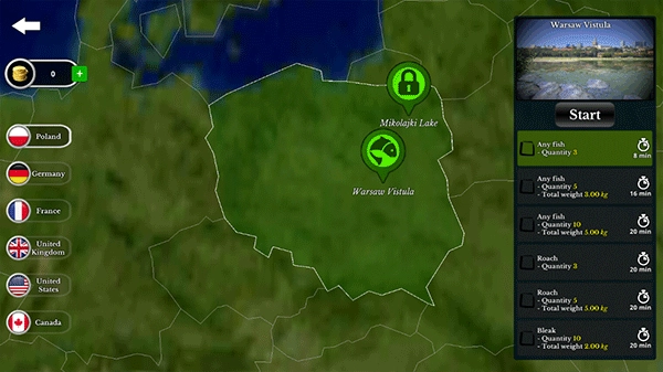 9、于首页点击“Free Fishing”,便能选择钓鱼场景,后续场景需消耗金币方可解锁。