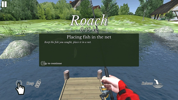 2、游戏中自由控制钓竿钓鱼动作,成功钓到游戏中的小鱼。