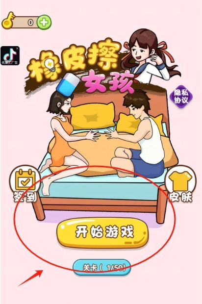 1、点击开始游戏,用橡皮擦擦掉画面里的可疑之处,找出隐藏的真相,玩法超新颖。