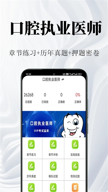 1. 拥有海量题库资源,包含历年口腔执业医师考试真题以及模拟试卷,为用户供应全面的备考资料,助力其精准把握考试重点。
