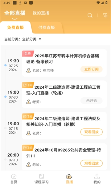 用户可以随时点进软件的“直播”版块观看名师直播,边看直播边学习。