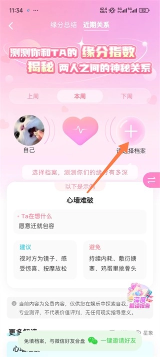 2、可以看到有很多测试分析板块,这边以【缘分合盘】为例