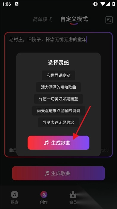 3、能根据用户输入的文字内容,生成相应风格歌曲。