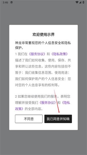 2、打开进入软件,点击同意并知晓