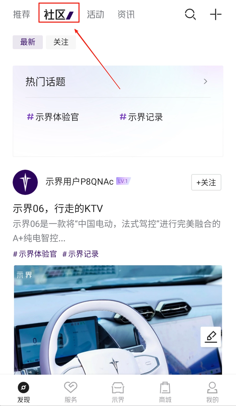 1. 完成安装后,进入社区板块,浏览热门的车友话题。你既可以借助关键词搜索,也能通过分类标签,来查找目标内容。还能通过点赞、评论的方式,参与互动交流。