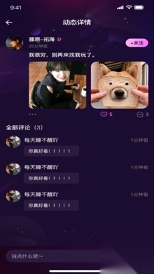 2、支持发布动态,自行上传图片进行分享,并进行点赞、评论等操作;