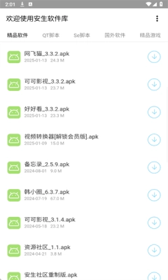 安生软件库官方版,是一款极为实用的软件资源聚合库。借助这款软件,能轻松实现大量资源的下载与使用,资源丰富多样。它可以为用户提供更多便利,涵盖各类影视、游戏、工具等,一应俱全,能够充分满足不同用户的喜好。有需要的朋友们,赶紧下载体验吧!