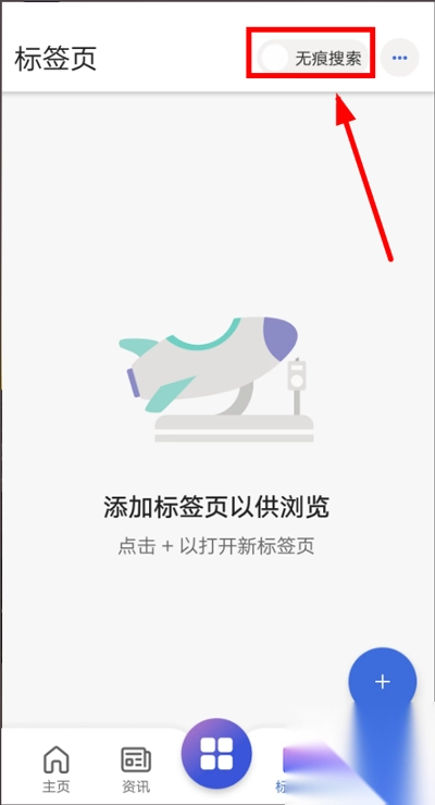 2、在【标签】页面,点击【无痕搜索】即可开启无痕模式