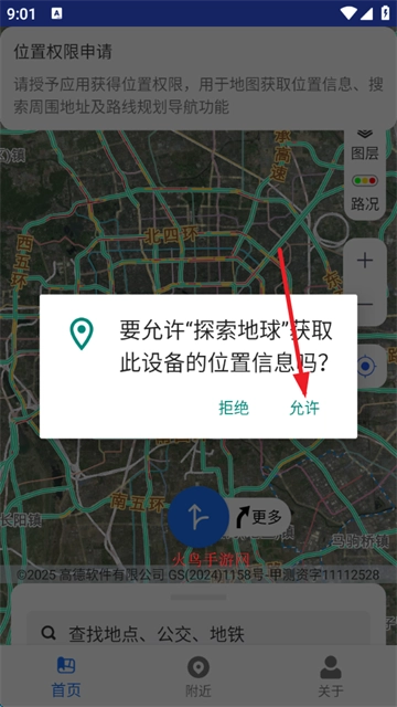 第三步,点击“允许”,让软件获取当前设备的位置信息,最后即可使用。