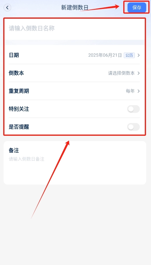 2、把要记的事儿名、日期,还有多久重复一次填好,确认无误后点击保存。