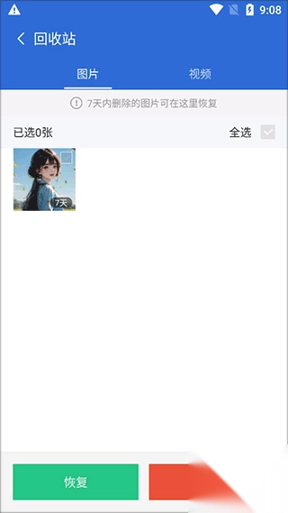然后勾选我们需要恢复的图片和视频然后点击下面的【恢复】就可以了。