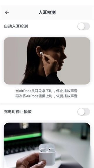 具备耳机入耳检测功能,能达成与iPhone一致的无缝式体验,戴上耳机即可畅享音乐,摘下则自动暂停。