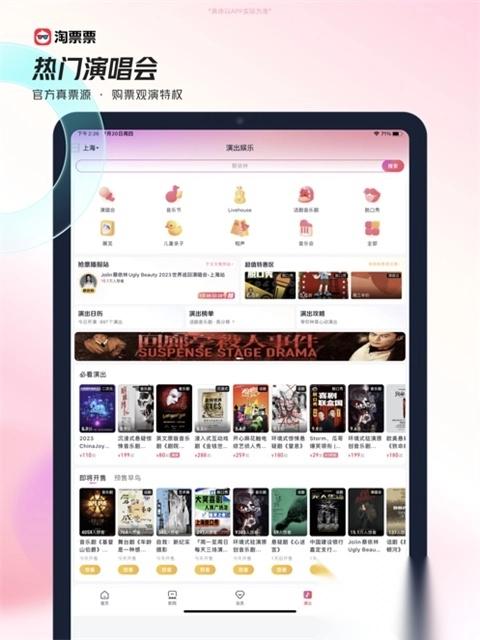 淘票票iPad版,这可是一款超棒的电影选座购票软件。当下,它已经覆盖了全国6000多家电影院,不仅能在线购买电影票,演出赛事的门票也能轻松搞定,让你畅享快速且实惠的购票体验。