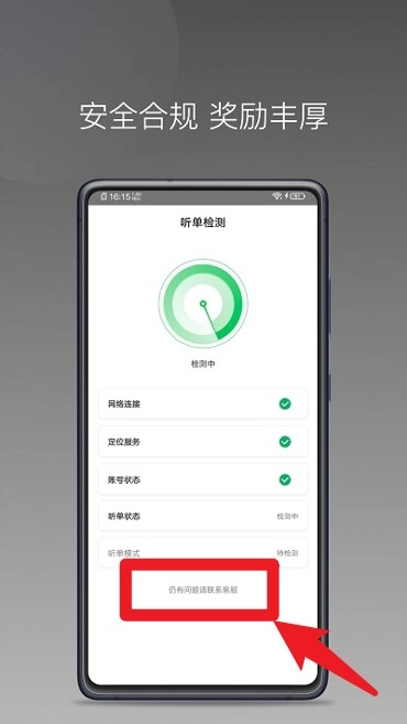 4、听单检测页确保所有状态正常后即可顺利开始服务接单。
