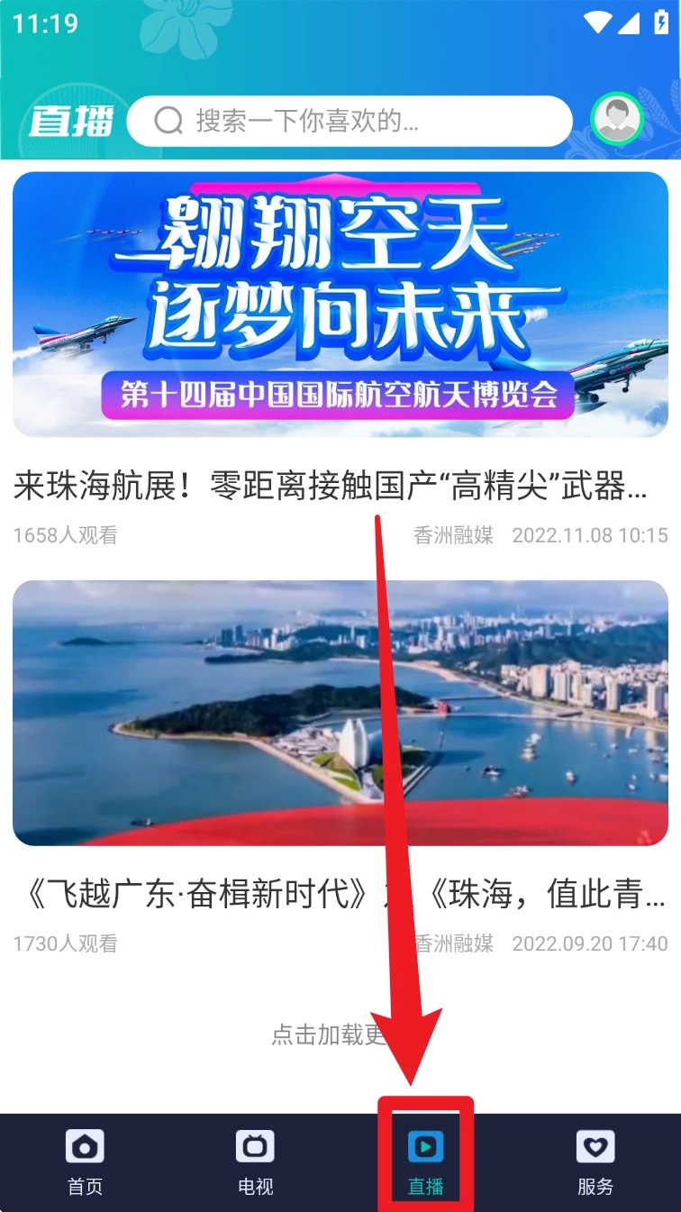 4. 轻点“直播”栏目,即可观看当下正在进行的本地活动直播,且支持通过上下滑动来切换节目内容。