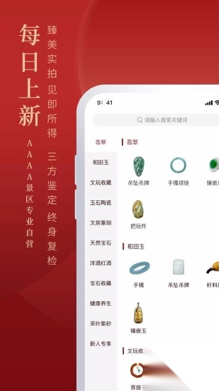 怀南会app,是专为古玩艺术品精心打造的线上购物平台。对于钟情古玩与收藏品的用户而言,在此能随时掌握最新的古玩商品资讯,助你及时发现心仪好物。每日都会有众多热门商品及时推送,方便你迅速挑选喜爱的商品进行交易。平台商品种类丰富,涵盖翡翠、和田玉、文玩等诸多品类。在此交易便捷又安全,平台全力保障每一位用户的权益,所推荐商品皆为正品,可放心选择,让你轻松购得心仪商品,全部100%正品。致力于打造权威的玉石珠宝文玩交易平台,感兴趣的用户快来下载体验吧。