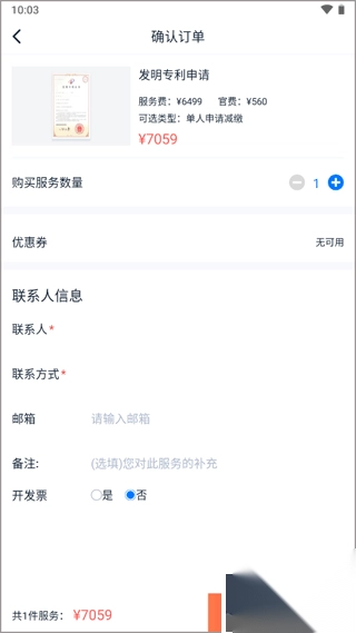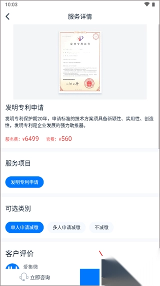 2、选择缴费的类型,可以先咨询发明专利相关的信息,了解过后就点击立即下单。