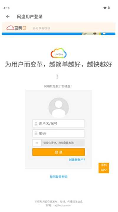 3.进入登录特免,输入你的蓝奏云的账号和密码,然后完成登录