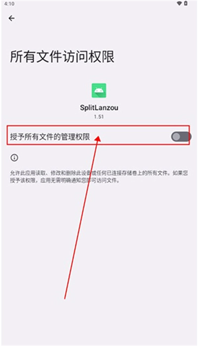 1.打开SplitLanzou,首次使用需要授予App储存权限