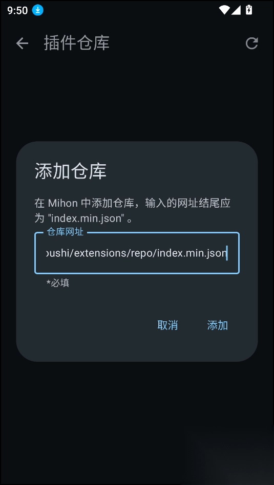 请输入以index.min.json结尾的插件仓库网址,以下是第三方插件仓库地址: