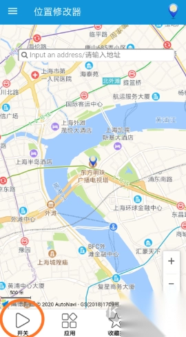 2、点击底部菜单中的"开关",启动位置服务。