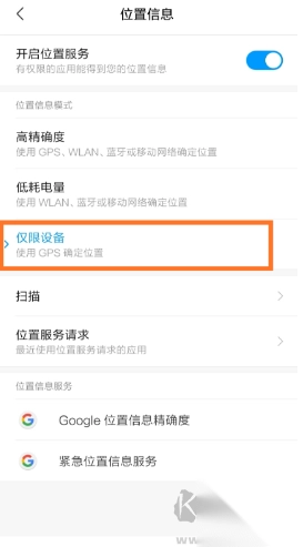 Android 9及以下,如果手机设置里的位置服务已经开启,请确认已设置为"仅限设备"模式。