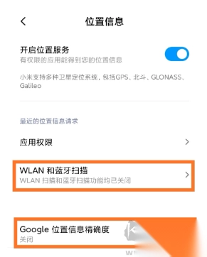 Android 10,如果手机设置里的位置服务已经开启,请确认已关闭WLAN扫描和蓝牙扫描,并且关闭Google位置信息精确度。
