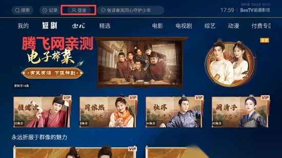 打开BesTV哈趣影视,在主页点击上方的登录功能。