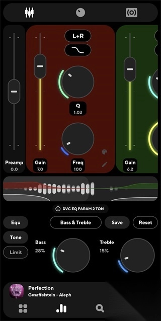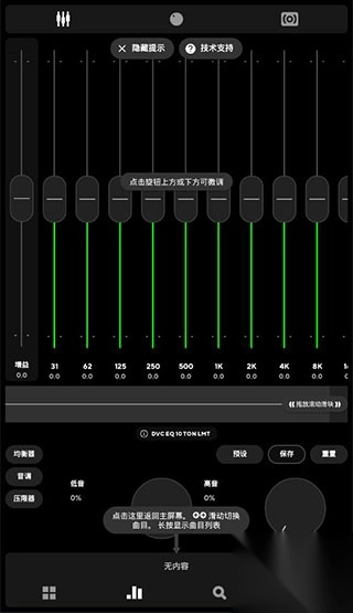 3、在均衡器页面,你可以点击旋钮上方或下方进行微调,根据自己的喜好可以设置为多种不同风格。