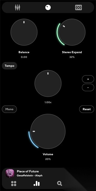 Poweramp官方中文版为了增强播放功能,它更是加入了立体扩声、单声道混合、Bass和Treble独立调整等功能,为的就是可以让用户们体验最为舒适的使用体验。除此之外,软件除却丰富的功能以外,其使用操作也是极为的简单,用户们只要大致的浏览软件的功能板块即可立马熟练的进行使用,十分的直观易用。