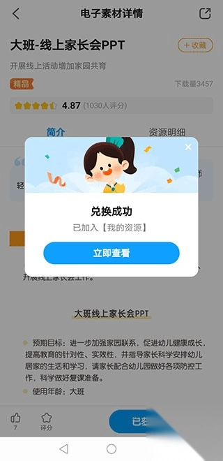 4、成功兑换后,可在“我的资源”中查看。