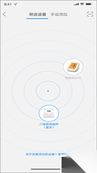 附近设备搜索功能:进入附近设备页面后,系统会自动扫描周围能够匹配的设备,点击相应设备就能完成绑定 。