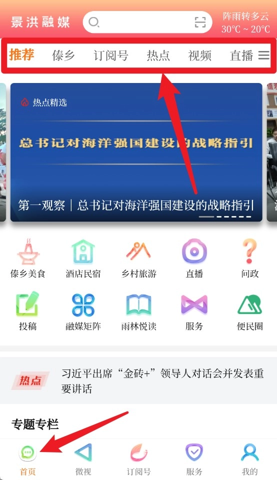 1. 轻点“首页”,即可浏览推荐、热点、视频等本地资讯以及生活服务入口。