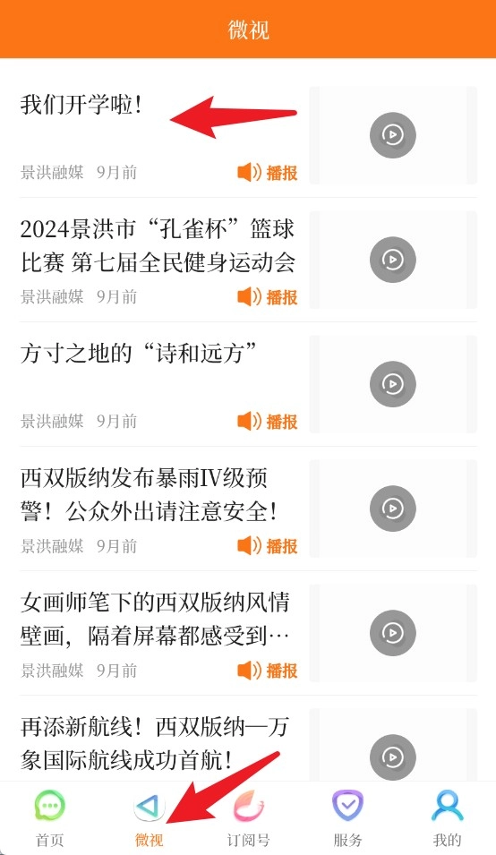2. 轻点“微视”,即可进入本地微视频栏目,在此能够浏览新闻播报以及短视频内容。