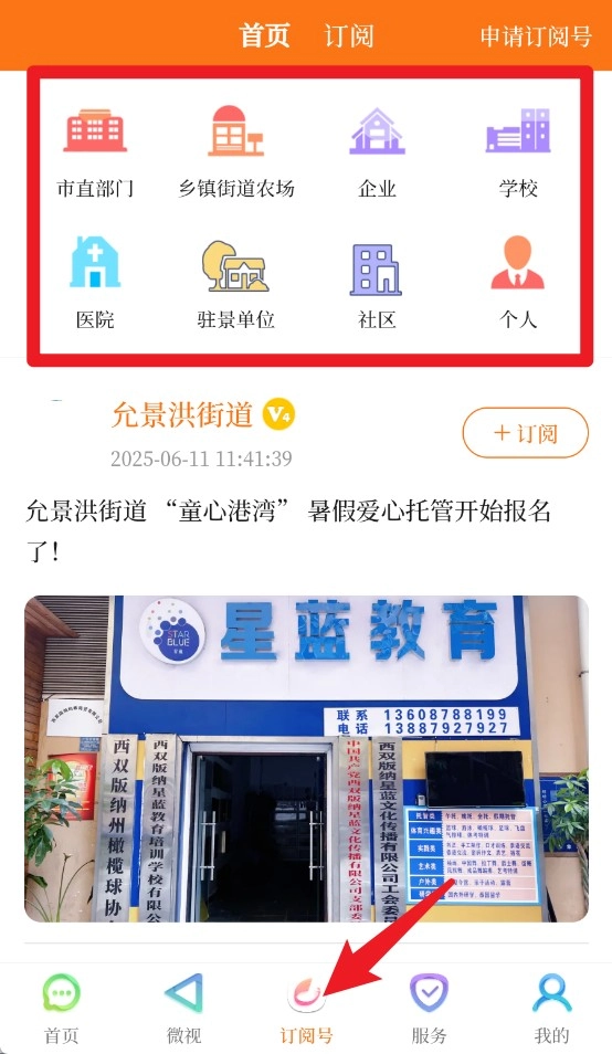 3. 在“订阅号”里,能够依据单位类型来订阅个性化内容,像学校、医院之类。