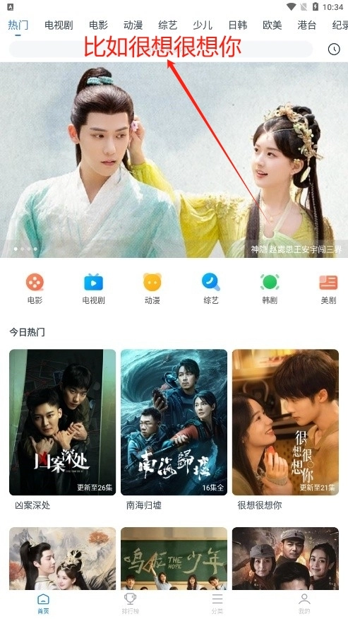 4、最后,你还能通过上方的搜索栏,搜索自己想看的视频。