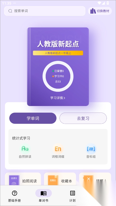 3、同步教材:同步课本单词,标注自然拼读、词根词缀、音标等学习要点。