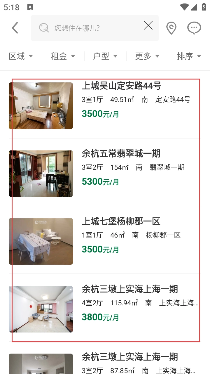 2、在租房列表页面,选择心仪房源,进入房源详情页。