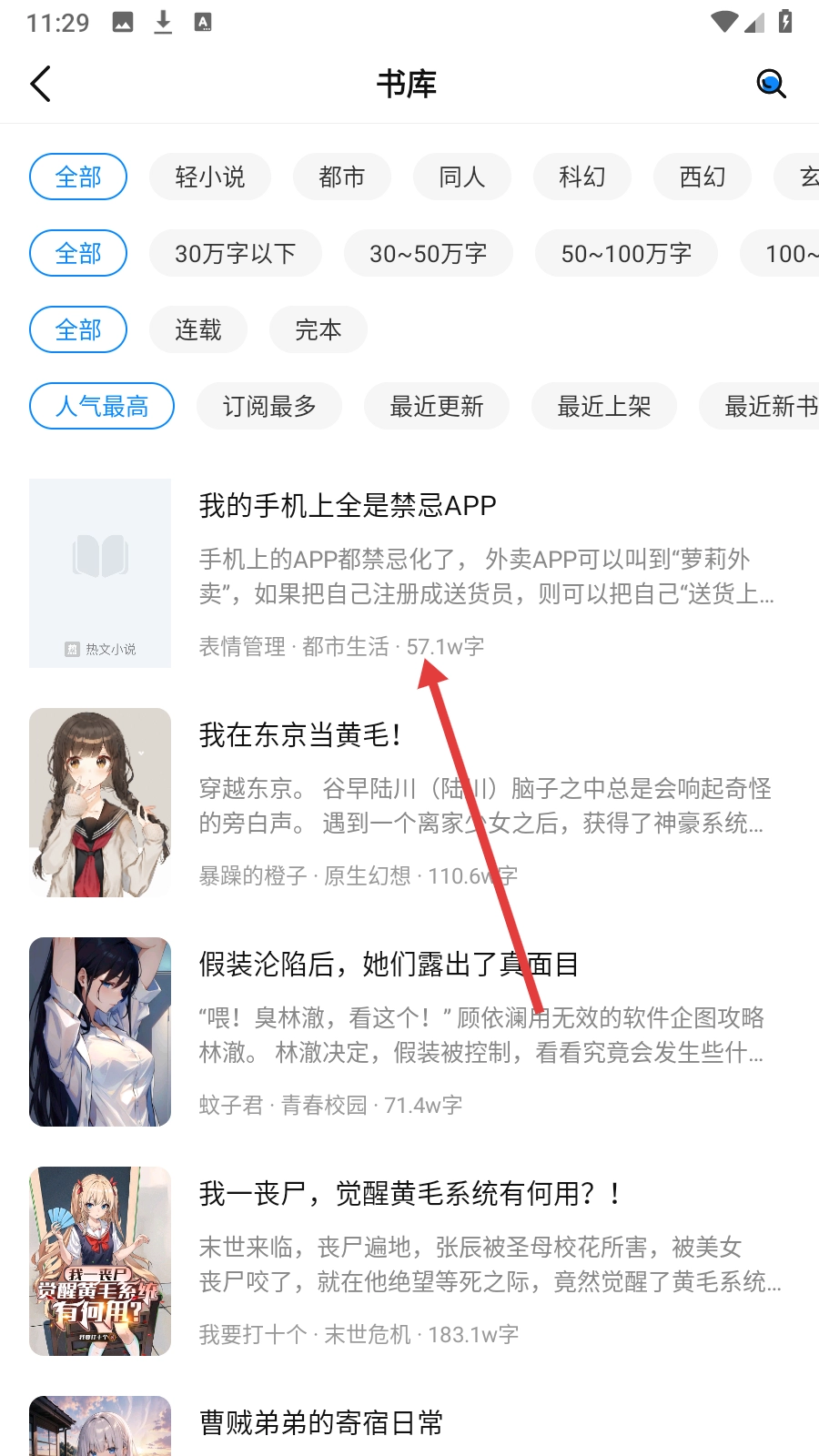 2、选中【感兴趣的小说】,查看书籍详细信息。