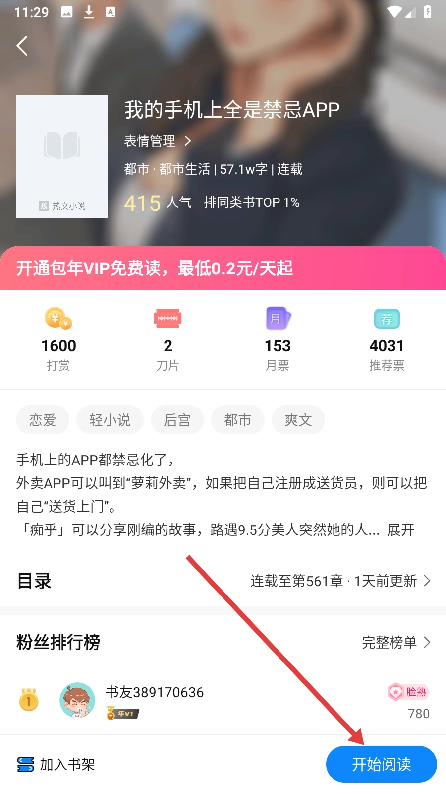 4、进入小说阅读界面后,即可【开始阅读】内容。