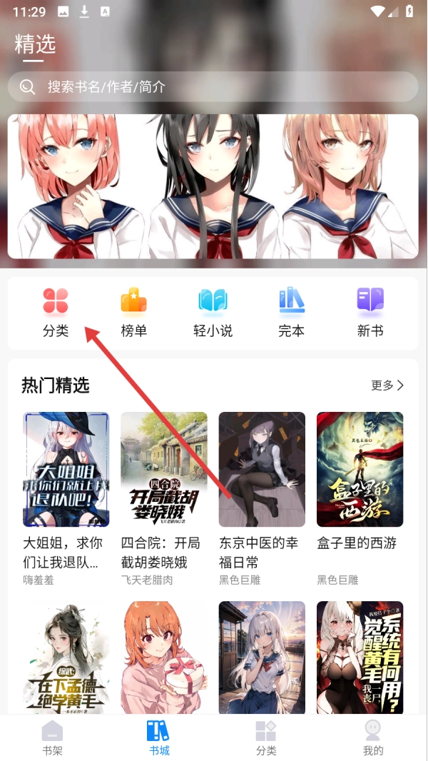 1、点击【分类】,进入书库筛选小说类别。