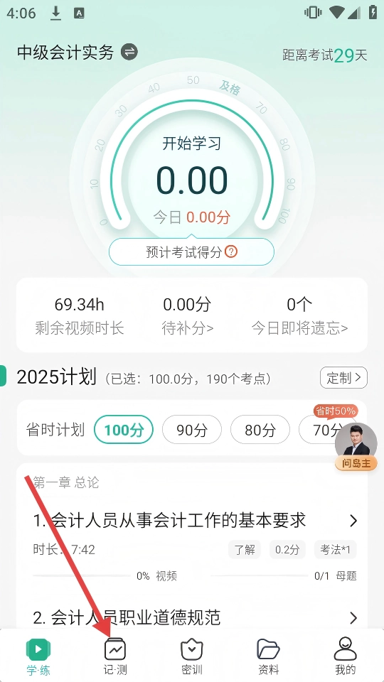 1、在【中级会计实务】首页,点击底部【记·测】,进入记忆与练习模块。