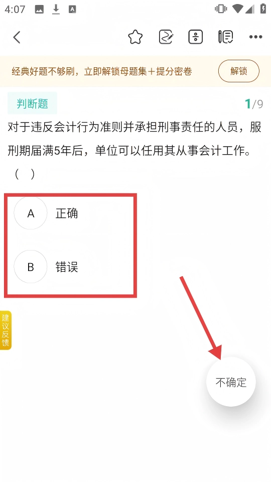 4、答题时若遇不确定题目,点击右下角【不确定】,标记该题以便复盘。