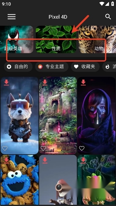 打开app,用户们可以挑选自己喜欢类型的壁纸,包括动物类,超级英雄壁纸等