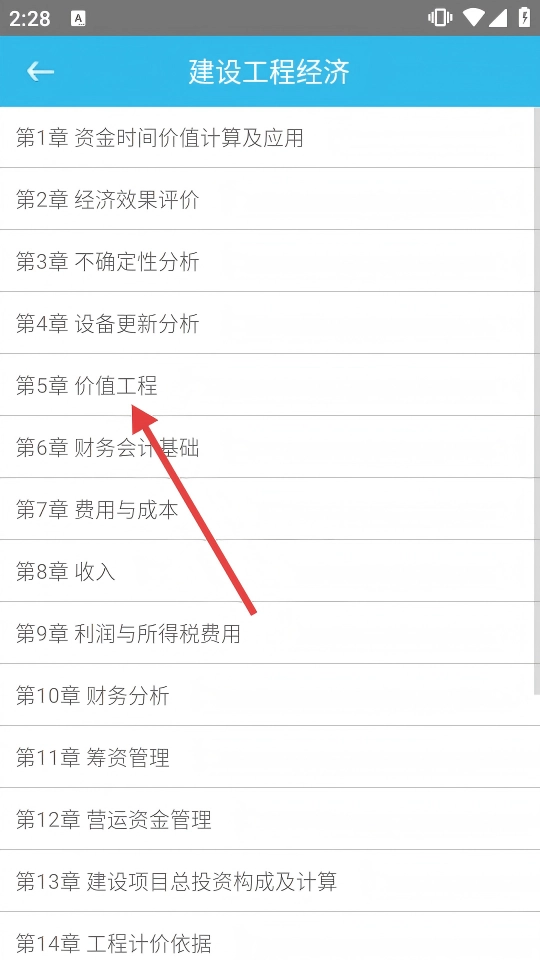 2、在【建设工程经济】的章节列表中,选择【价值工程】,聚焦该章学习。