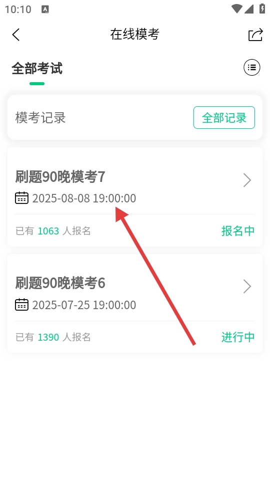 2、选择我们需要练习的板块,点击进入,以【刷题90晚模考7】为例。
