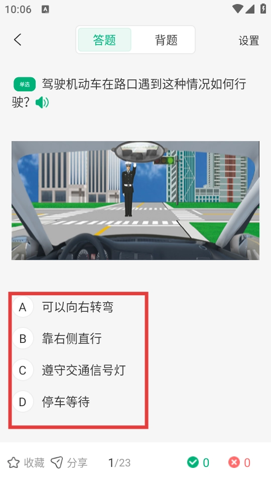 4、进入答题界面,根据题目意思,选择正确的答案。