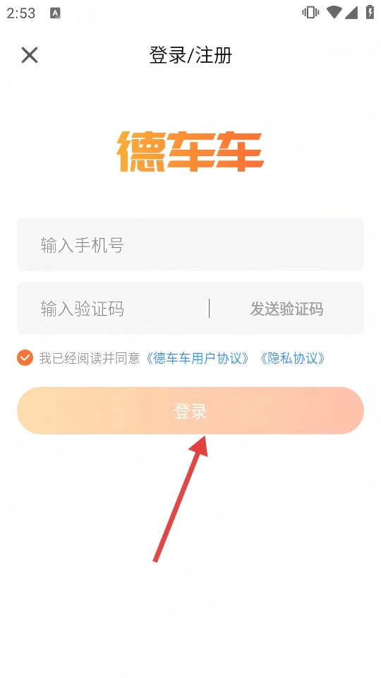 1、在用户服务和隐私协议弹窗,点【了解并同意】,进入德车车主页。